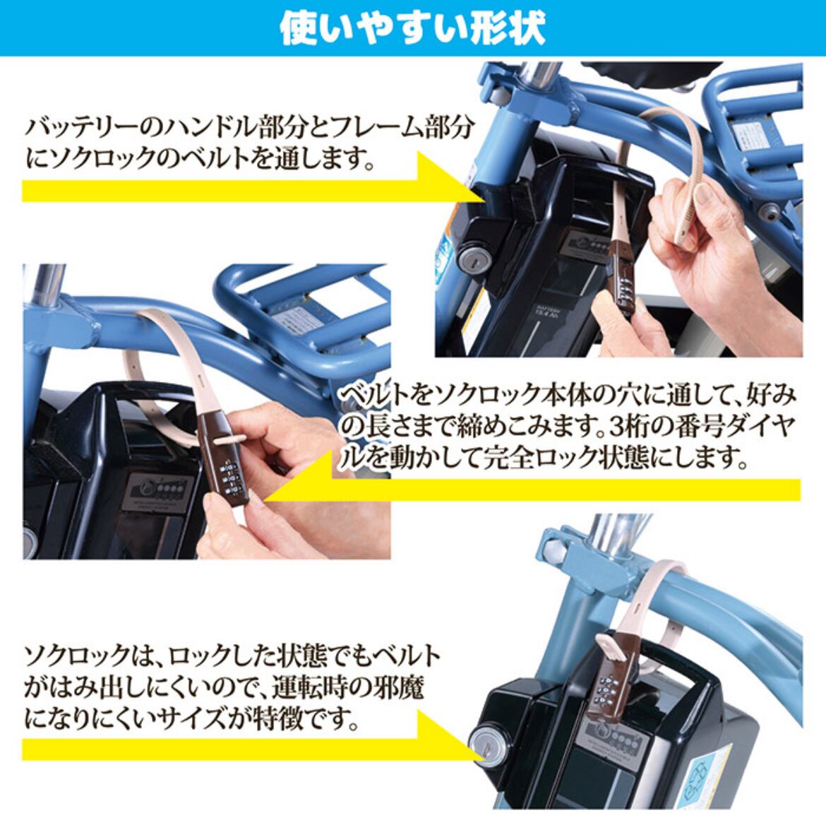 近年、大変人気のある電動アシスト自転車ですが、バッテリーの盗難も増加しています。バッテリーにはソクロックでフレームと結合しておくことをオススメします。